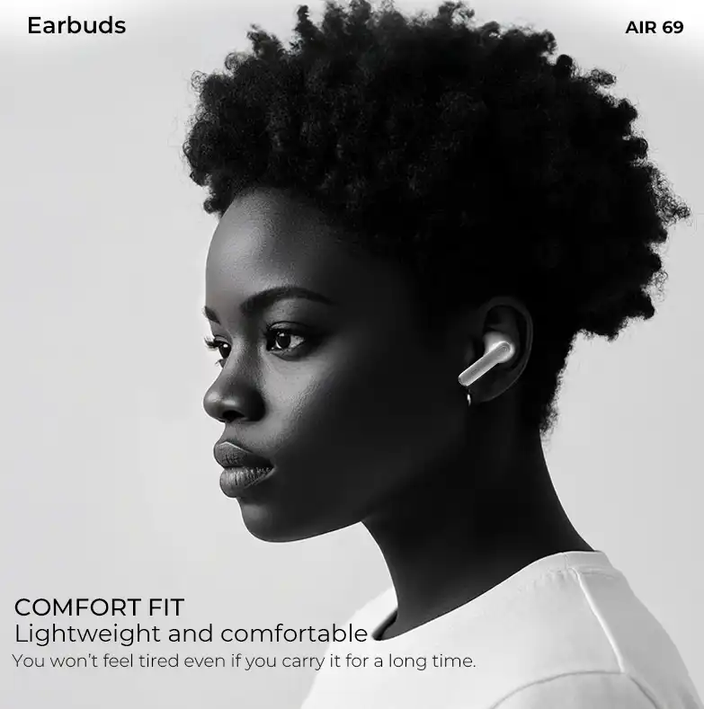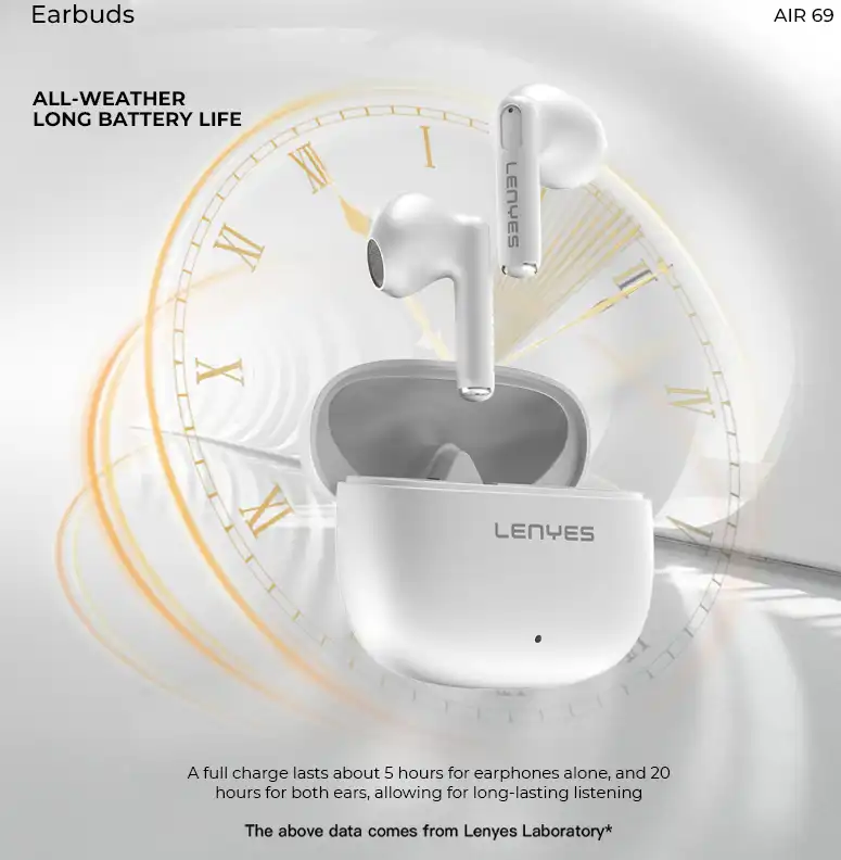 AIR69 offers the same core performance as AIR68—20 hours of playtime, Bluetooth 5.4, touch controls, voice assistant support, and a sleek charging case. Aimed at casual users, it’s perfect for music and calls with balanced audio and reliable connectivity. Available in 2 colors