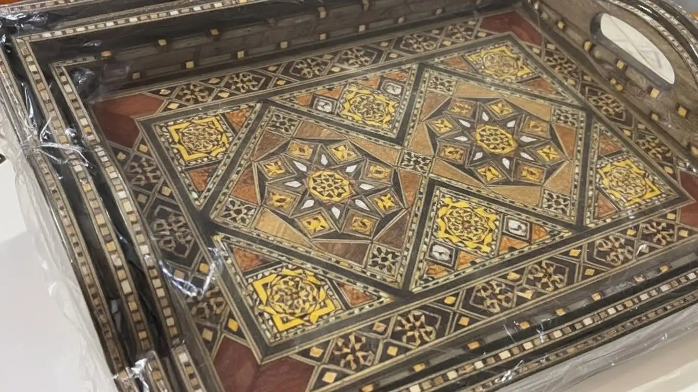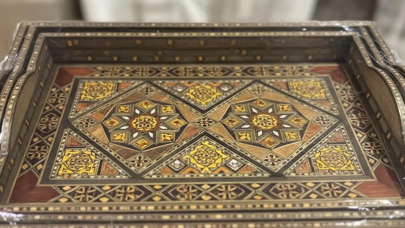 Artisan Craftsmanship: Detailed wooden mosaic inlay inspired by authentic oriental heritage.