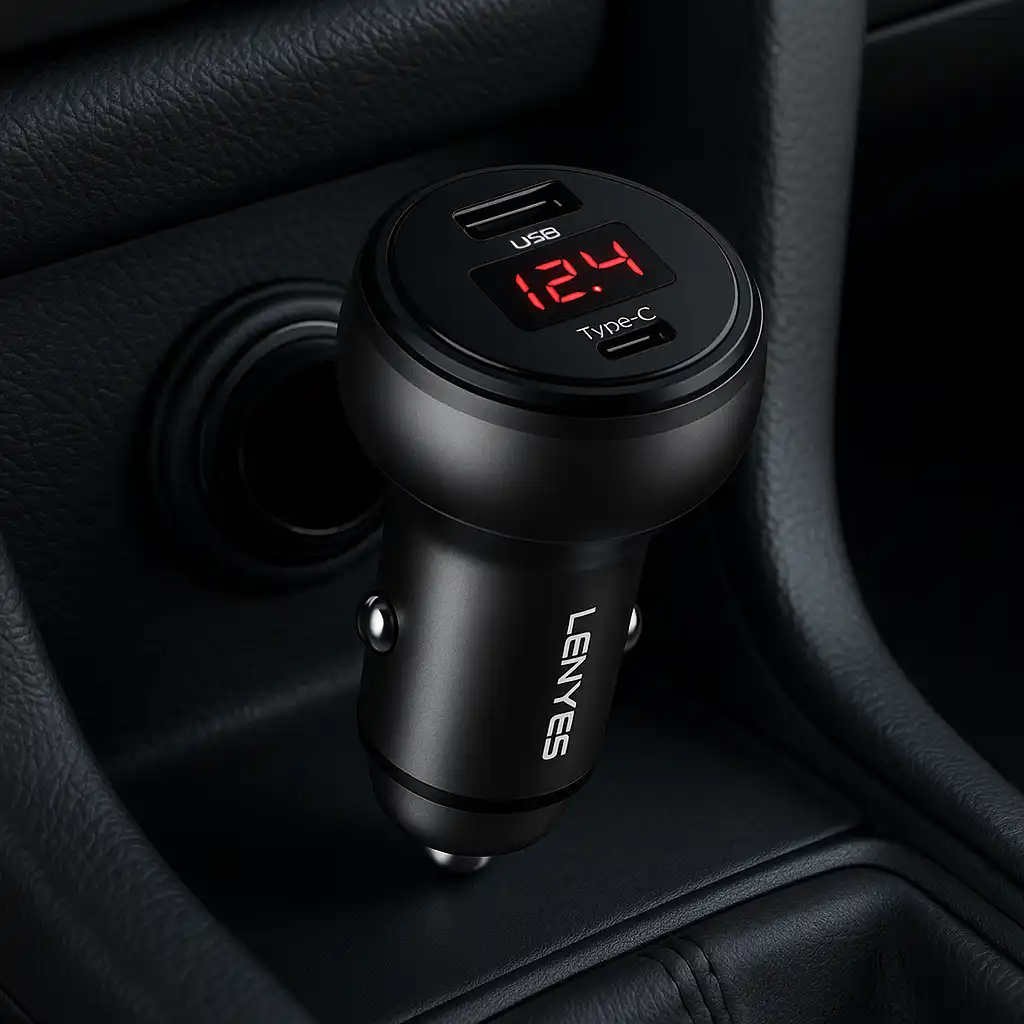 The Lenyes CA68 is a 48W fast-charging car charger designed for reliable power on the go. It features dual USB and Type-C outputs supporting QC18W and PD30W for rapid charging of two devices at the same time. Equipped with smart-chip protection and a digital voltage display, it ensures safe, stable performance for all smartphones and electronics.