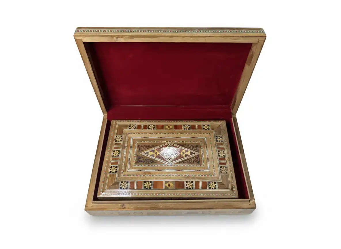 Artisan Craftsmanship: Features authentic wooden mosaic inlay inspired by traditional oriental art.