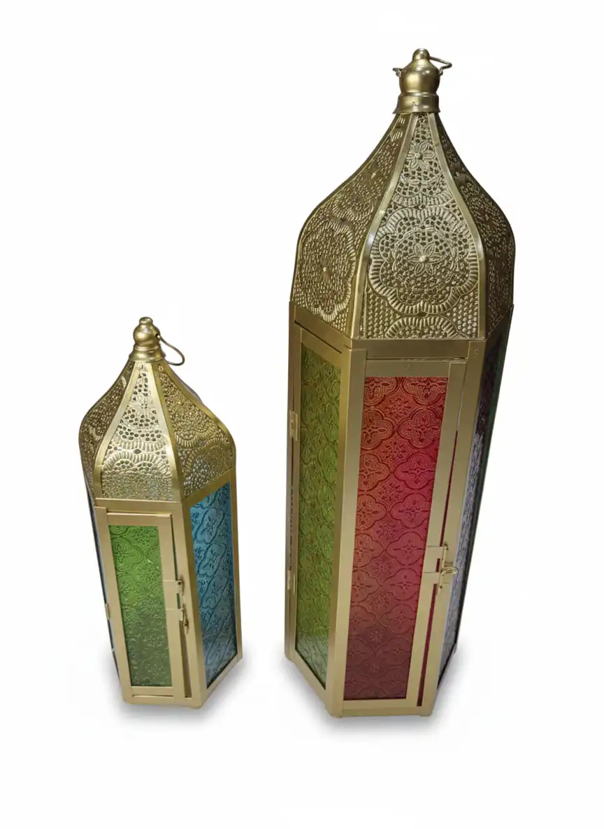 Ramadan Lantern Set 2Pcs with Color Glass