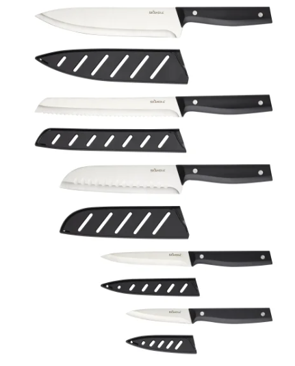 For safety and convenience, blade guards are included for secure storage, and every piece is top-rack dishwasher safe for effortless cleaning.